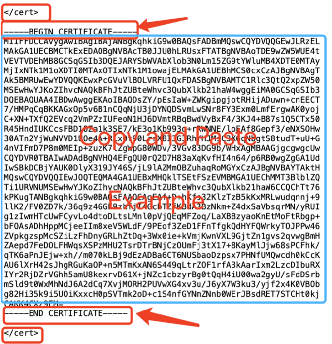 Kopieren Sie das Zertifikat und fügen Sie es in Client-Zertifikat ein.