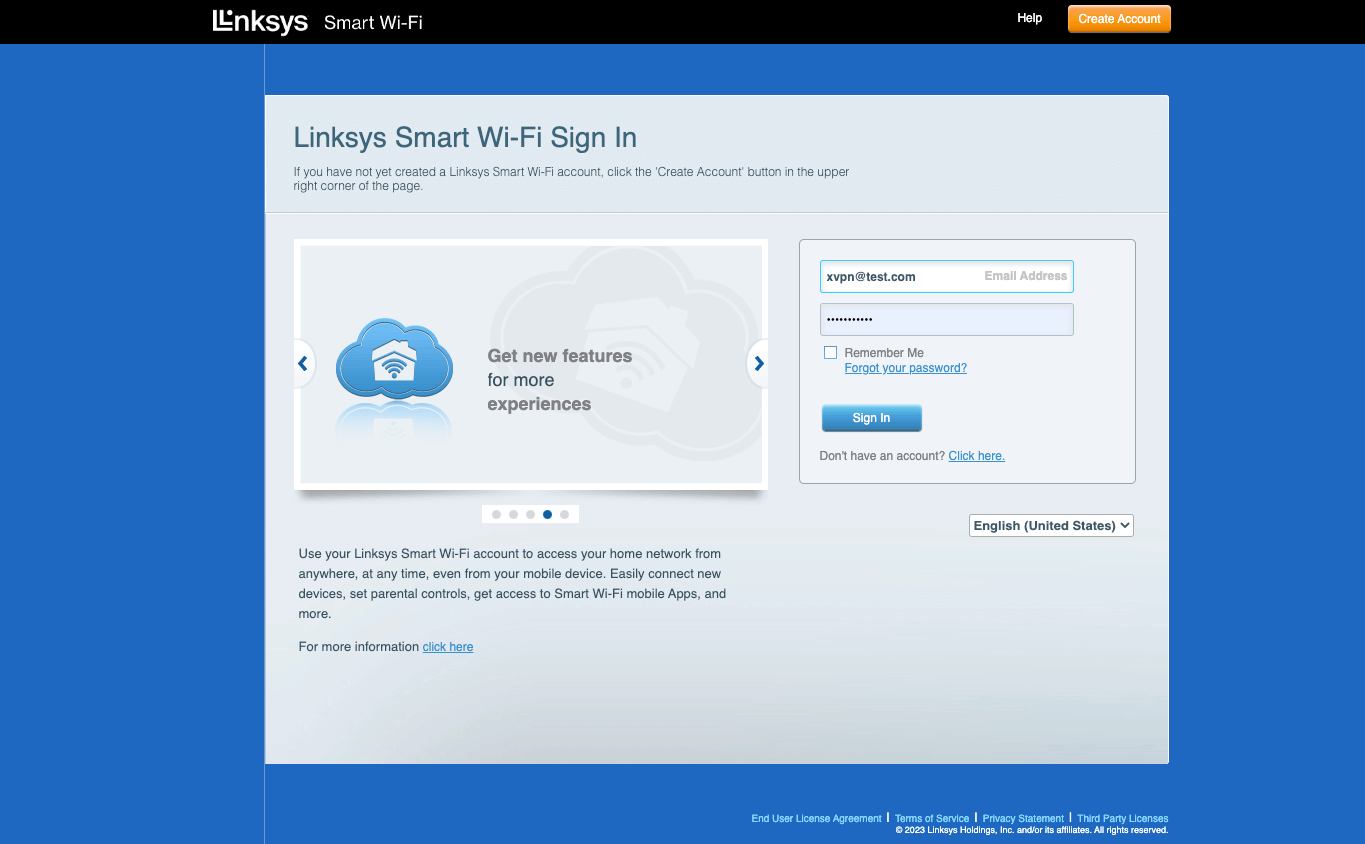 Geben Sie Ihren Linksys-Account und Ihr Passwort ein und klicken Sie dann auf "Anmelden"um das Kontrollpanel des Routers zu betreten."