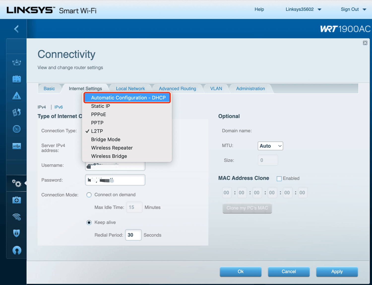 Sie können die L2TP-Anmeldeinformationen in das entsprechende Feld Ihres Routers kopieren und einfügen.