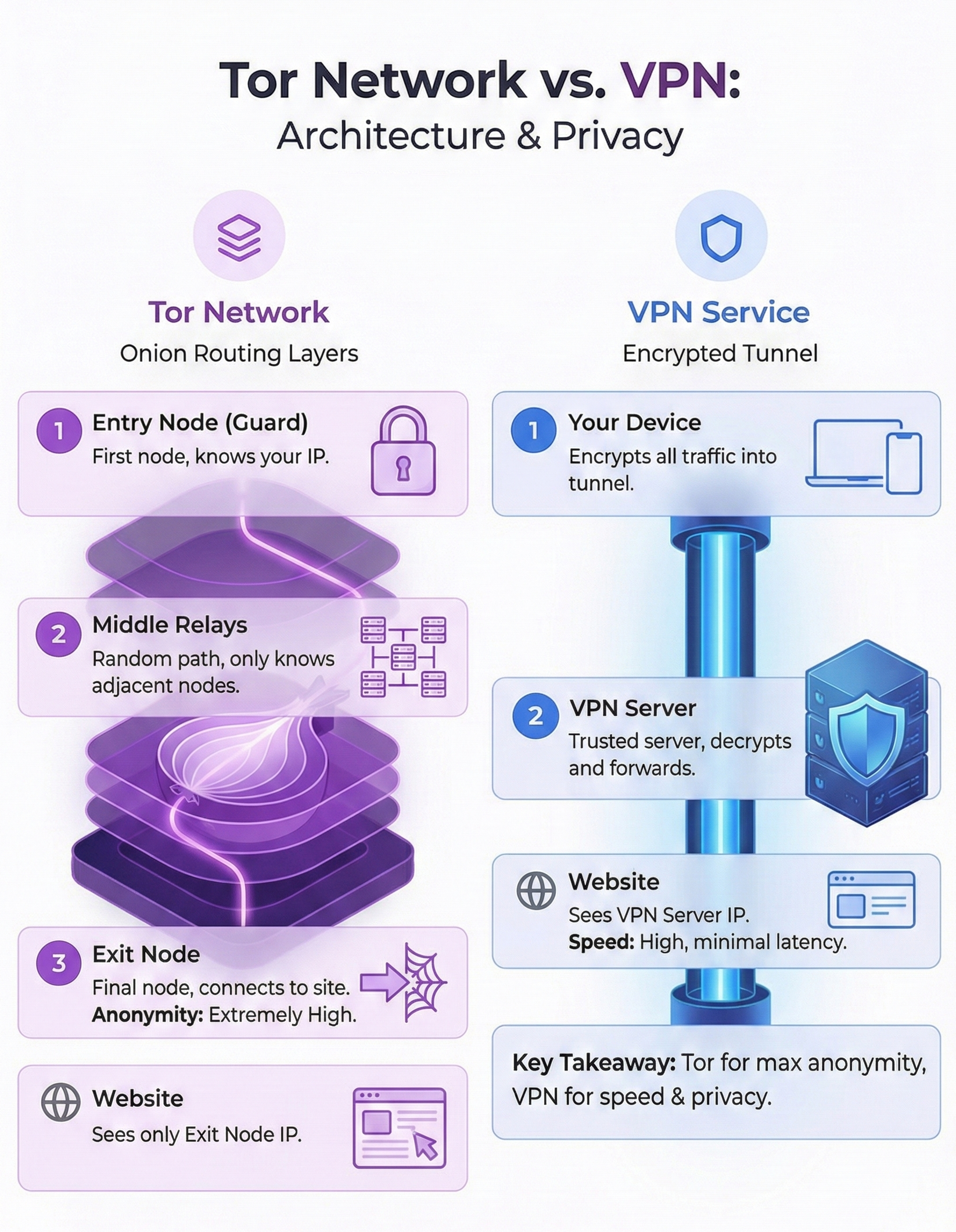 Pro tip: Use VPN for daily activities (streaming, browsing, shopping) and Tor when you need maximum anonymity for sensitive activities.